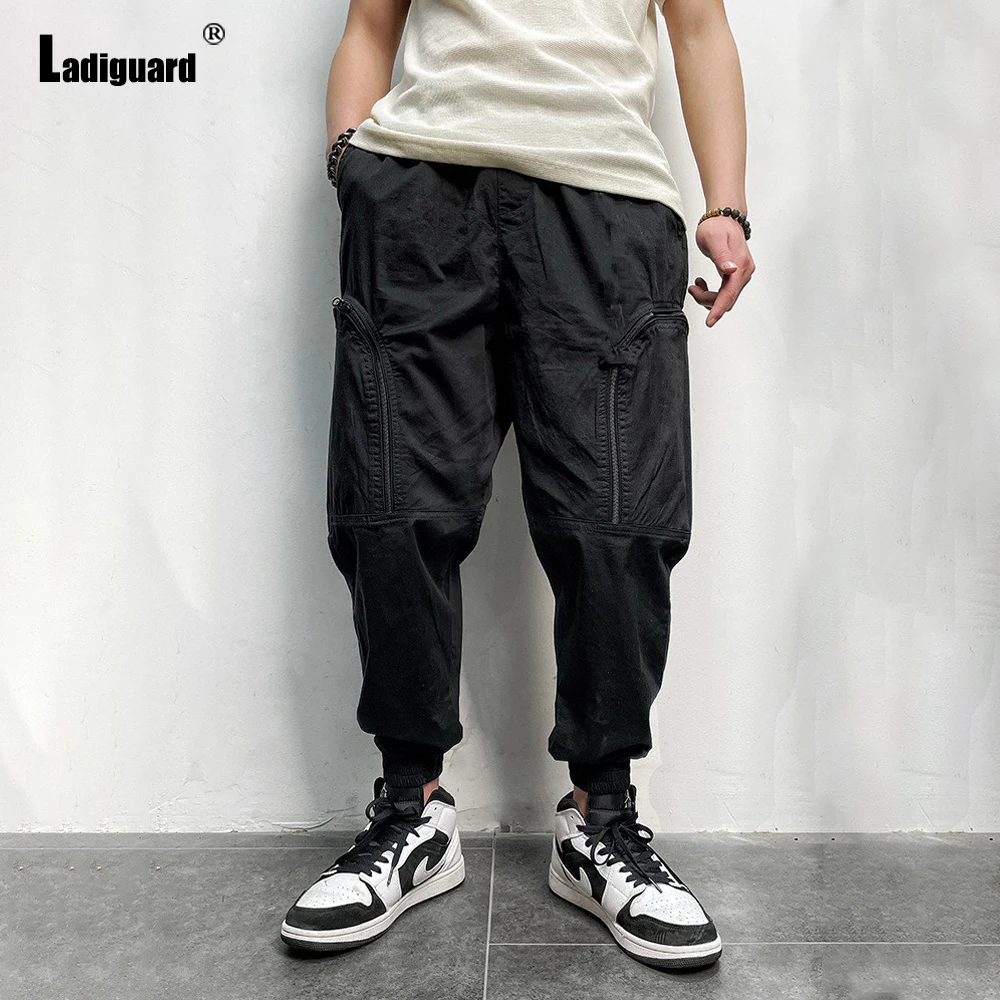 Ladiguard Plus Size Mens Pencil Pants 2021 European and American Style Pants Fashion Zipper Pockets Trousers Solid Hip Hop Pant