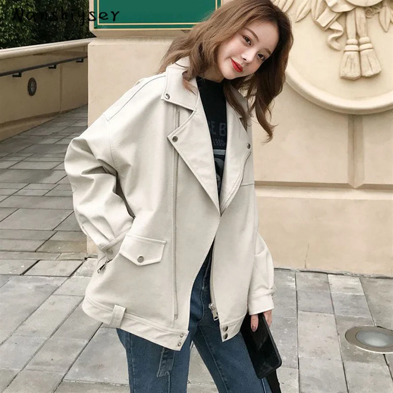 Best Nanshiyser Fashion Oversized Coat Women Faux Leather Jacket Spring Autumn Loose Biker Motorcycle Jackets Female Punk Streetwear and You will save 53% or US $24.47 today