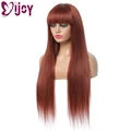 Brazilian Straight Human Hair Wigs With Bangs #33 Brown Auburn Non-Remy Full Machine Made Wig For Black Women IJOY Glueless Wig