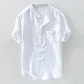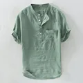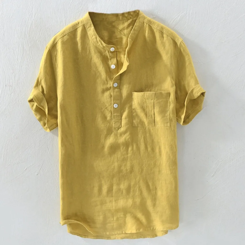 Best KANCOOLD Shirt Men's Summer New Pure color Cotton Hemp Button Short Sleeves Top Fashion Large Size Blouse shirts for men Jun2 and You will save 51% or US $5.83 today
