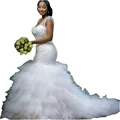 Costomer Scores and Reviews for Vintage Plus Size Mermaid Wedding Gowns Beading Sheer Deep V Neck Backless Corset Ruffles Tulle 2021 Garden Princess Bridal